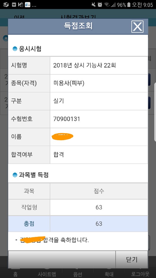 병점아카데미에서 63으로 합격했어요! 감사해요!