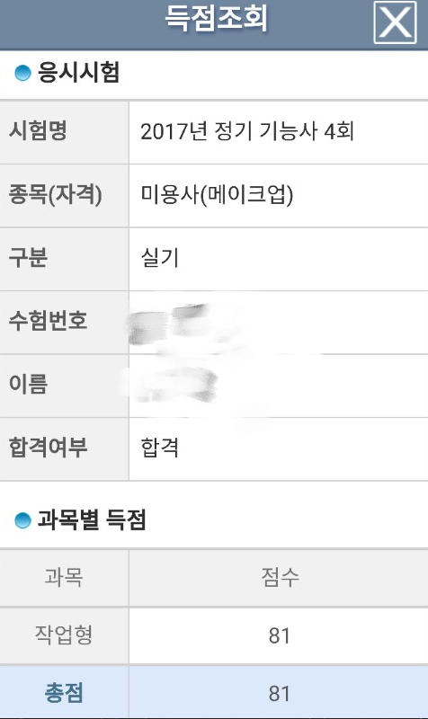 메이크업고득점으로합격^^