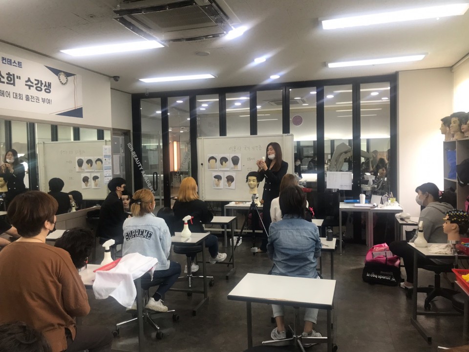 ? 교육장: 한국미용창업협회 교육장(간판 "미용에 미치다")