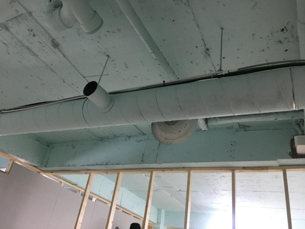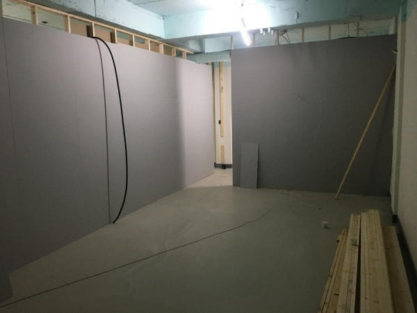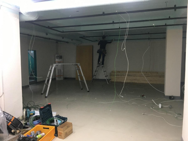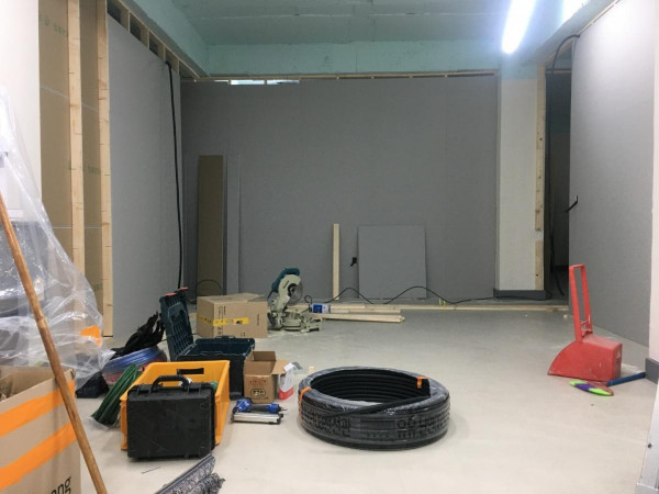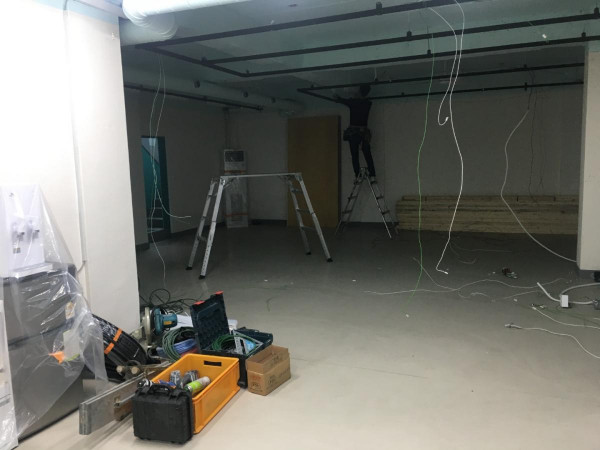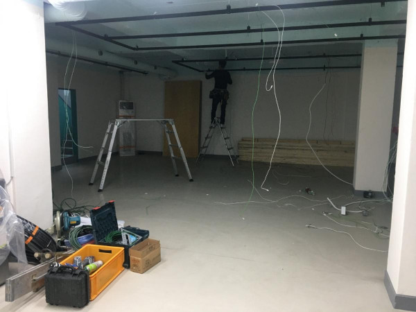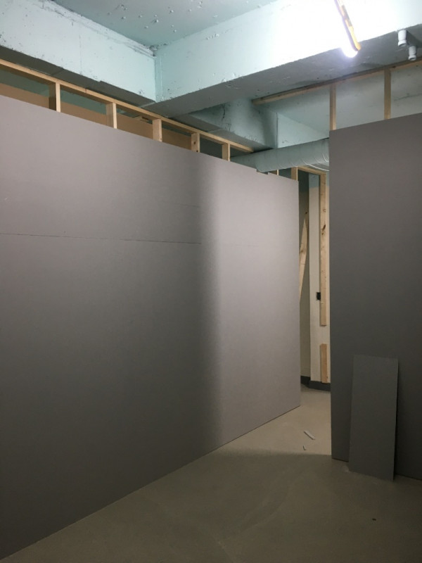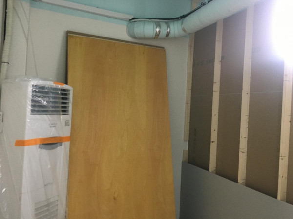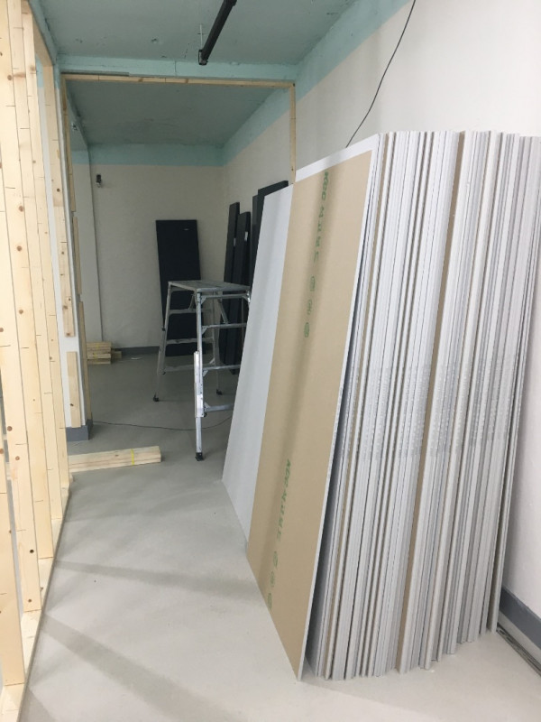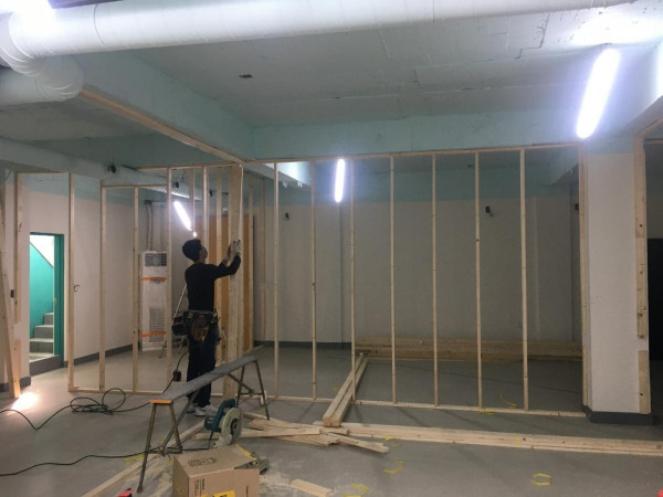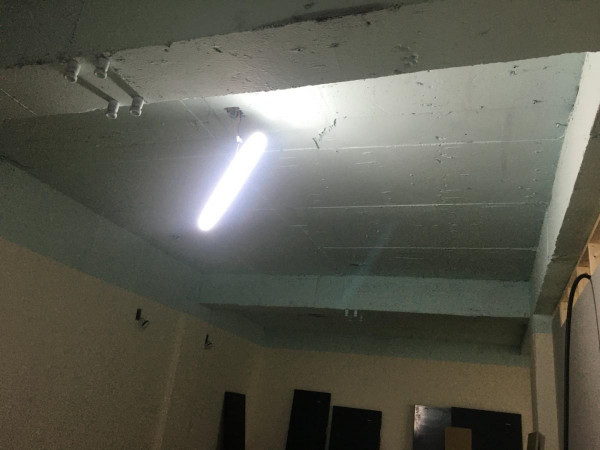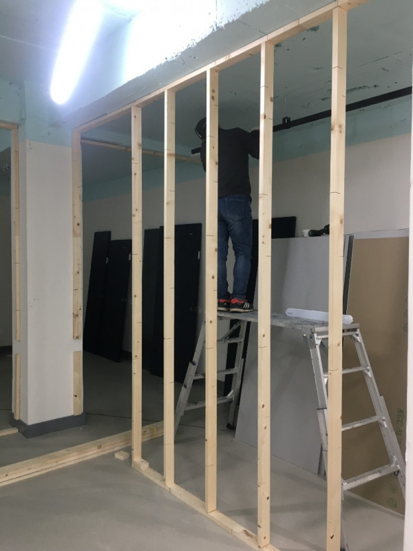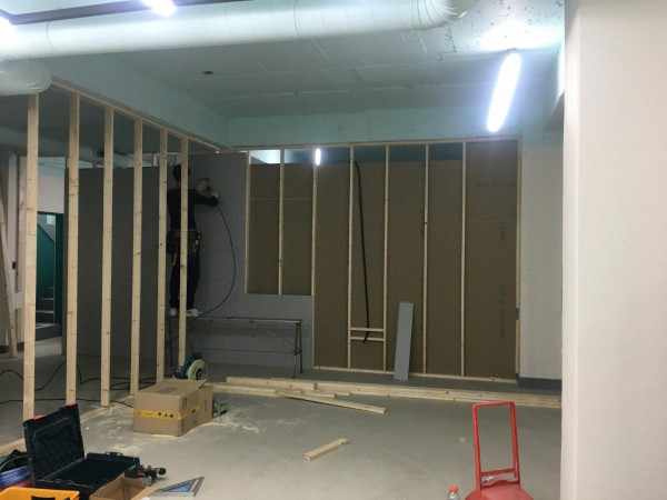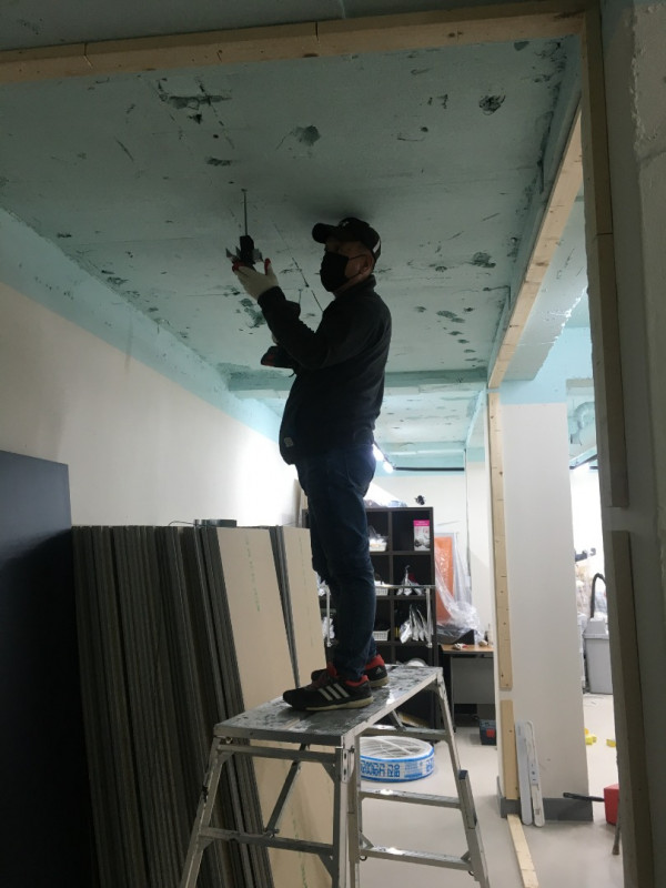 칸막이공사 1일차) 천장조명 제거, 벽 골조 세우고 석고보드 붙이기
